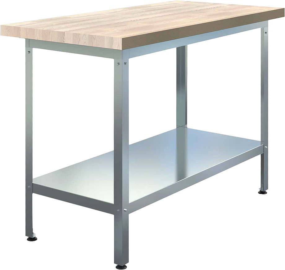 Производственный стол Assum СК-П-10/6 серии Standart используется на предприятиях общественного питания, торговли и пищевых производствах для работы с тестом, обработки ингредиентов перед приготовлением различных блюд и хранения кухонного инвентаря. Материал столешницы - наборный бук, материал полки и каркаса - нержавеющая сталь AISI 430 (уголок 40х40 мм толщиной 0.7 мм), материал опор ножек - пластик.