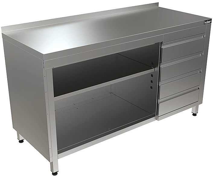 Стол производственный Кобор СТБ/1-120/60/О используется на предприятиях общественного питания, торговли и пищевых производствах для хранения кухонной утвари и обработки различных ингредиентов перед приготовлением. Материал каркаса - высококачественная нержавеющая сталь (труба 40х40 мм), материал столешницы - высококачественная нержавеющая сталь AISI 430, усиленная листом ЛДСП (толщина 16 мм).