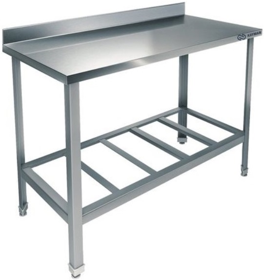 Производственный стол KAYMAN СП-244/0908 используется на предприятиях общественного питания, торговли и пищевых производствах для раскатки теста и обработки ингредиентов для приготовления блюд, а также как дополнительное место для установки и хранения кухонных приборов, инвентаря и сухих продуктов. Материал корпуса, столешницы и полки - нержавеющая сталь AISI 430, столешница усилена листом ЛДСП толщиной 16 мм.