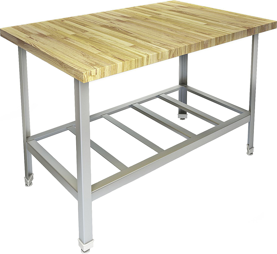 Кондитерский стол Техно-ТТ СП-345/1408 предназначен для раскатки теста и обработки ингредиентов для приготовления кондитерских и хлебобулочных изделий, а также для расстановки и хранения посуды и кухонного инвентаря на предприятиях общественного питания, торговли и пищевых производствах. Модель оснащена регулируемыми по высоте ножками, что позволяет компенсировать неровности пола. Материал разборного каркаса - уголок (40x40 мм) из нержавеющей стали AISI 304, материал полки-решетки - нержавеющая сталь AISI 430, материал столешницы - бук.