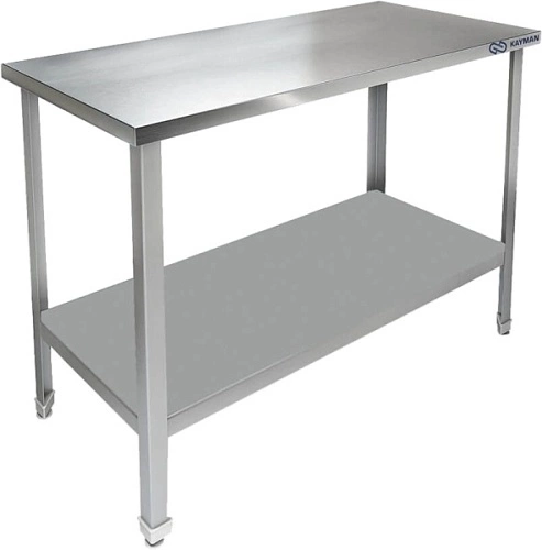 Производственный стол KAYMAN СЦ-242/1506 используется на предприятиях общественного питания и торговли для раскатки теста и обработки ингредиентов для приготовления блюд, а также как дополнительное место для установки и хранения кухонных приборов, инвентаря и сухих продуктов. Каркас выполнен из нержавеющего уголка AISI 430 40х40 мм, столешница - из нержавеющей стали AISI 430 толщиной 0,8 мм, усилена листом ЛДСП толщиной 16 мм.