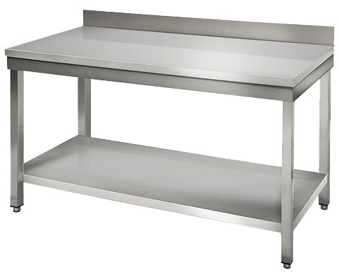 Производственный стол Kocateq SAT147A предназначен для раскатки теста и обработки ингредиентов для приготовления блюд, хранения посуды и кухонной утвари на предприятиях общественного питания и торговли. Столешница выполнена из нержавеющей стали AISI 304 толщиной 1 мм, усилена вкладкой из ДСП с ламинированием открытой сторон, каркас и полка - из нержавеющей стали AISI 201, ножки - из трубы квадратного сечения 40x40 мм, пятки - из пластика.