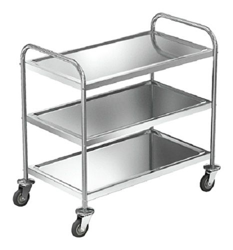 Сервировочная тележка Техно-ТТ ТПР-330/805 предназначена для доставки готовых блюд, сбора тарелок, чашек и стаканов со столов на предприятиях общественного питания и торговли. Модель оснащена 3 полками и 4 колесами, 2 из которых с тормозными устройствами. Разборный каркас выполнен из круглой трубы из нержавеющей стали AISI 201, полки - из нержавеющей стали AISI 430.