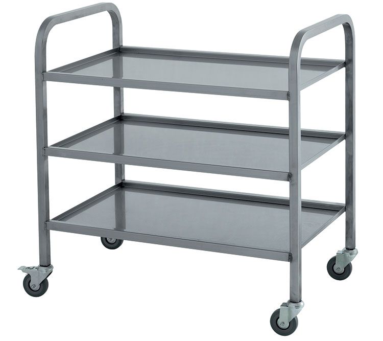 Официантская тележка VIATTO ТС-3-Н-ЮТ предназначена для сервировки столов и доставки грязной посуды в моечный цех на предприятиях общественного питания. Конструкция выполнена из нержавеющей трубы.