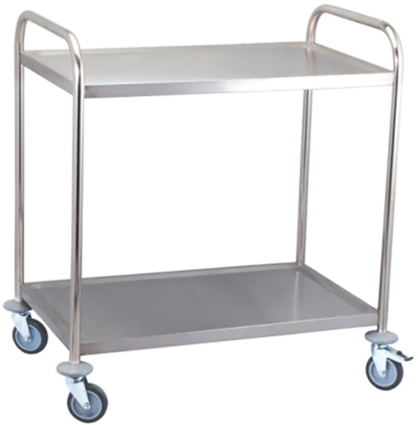 Сервировочная тележка VIATTO RST2B предназначается для перемещения и подачи готовых блюд, напитков, посуды, а также транспортировки грязной посуды на мойку. Модель оснащена двумя вместительными полками, 4 поворотными колесами, 2 из которых имеют стопор. Выполнена из нержавеющей стали.