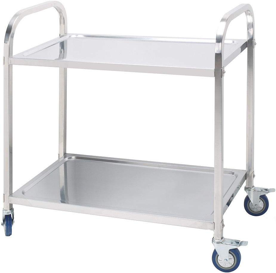 Сервировочная тележка Hurakan HKN-TS2 предназначается для перемещения и подачи готовых блюд, напитков, посуды и грязной посуды на мойку или кухонное помещение на предприятиях общественного питания, торговли и пищевых производствах. Модель оборудована 2 полками и 4 поворотными колесами, 2 из которых оборудованы тормозами. Материал - нержавеющая сталь.
