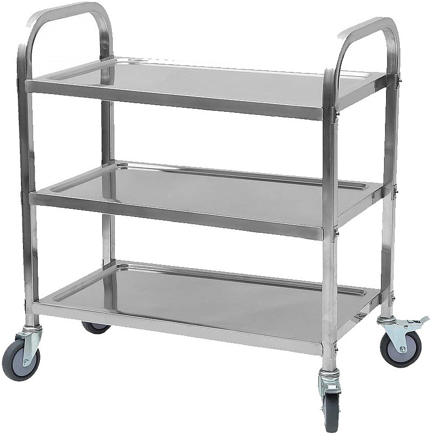Сервировочная тележка Hurakan HKN-TS3 предназначается для перемещения и подачи готовых блюд, напитков, посуды и грязной посуды на мойку или кухонное помещение на предприятиях общественного питания, торговли и пищевых производствах. Модель оборудована 3 полками и 4 поворотными колесами, 2 из которых оборудованы тормозами. Материал - нержавеющая труба.