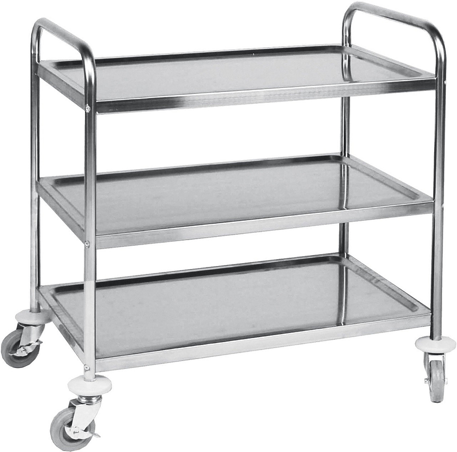 Тележка сервировочная Kocateq RP3L используется на предприятиях общественного питания, торговли и пищевых производствах для транспортировки инвентаря, посуды, продуктов, пищевых отходов и предметов сервировки. Модель оснащена полками, ножками с бамперами и поворотными колесами. Материал изделия - высококачественная нержавеющая сталь AISI 201.