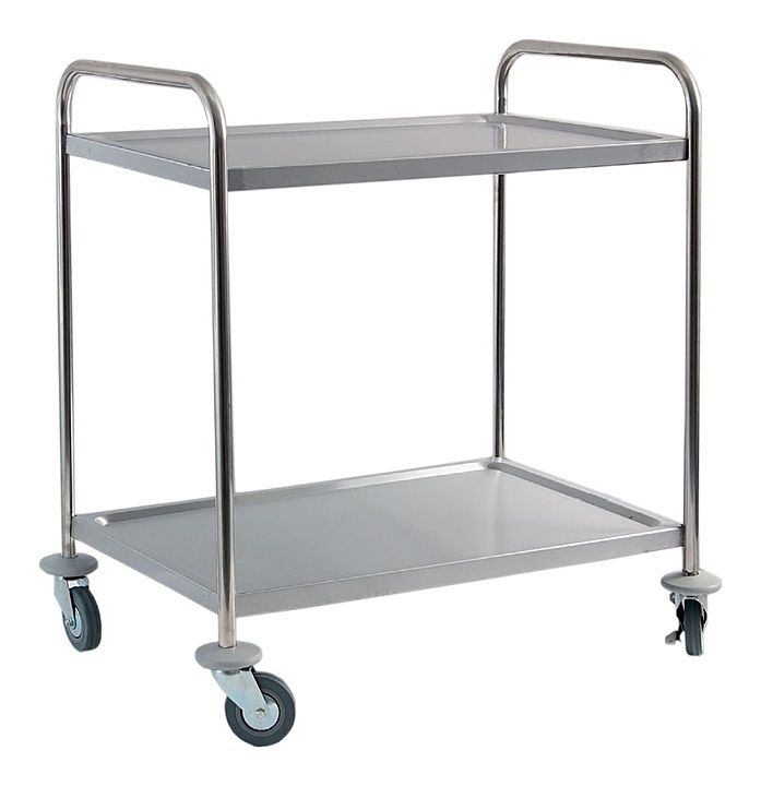 Официантская тележка GASTRORAG XBUS2-2133N используется для транспортировки столовых приборов, тарелок с готовыми блюдами, грязной посуды и т.д. на предприятиях общественного питания. Модель оснащена 2 полками и 4 колесами, 2 из которых с фиксаторами. Тележка разбирается для удобства транспортировки. Конструкция выполнена из нержавеющей стали.