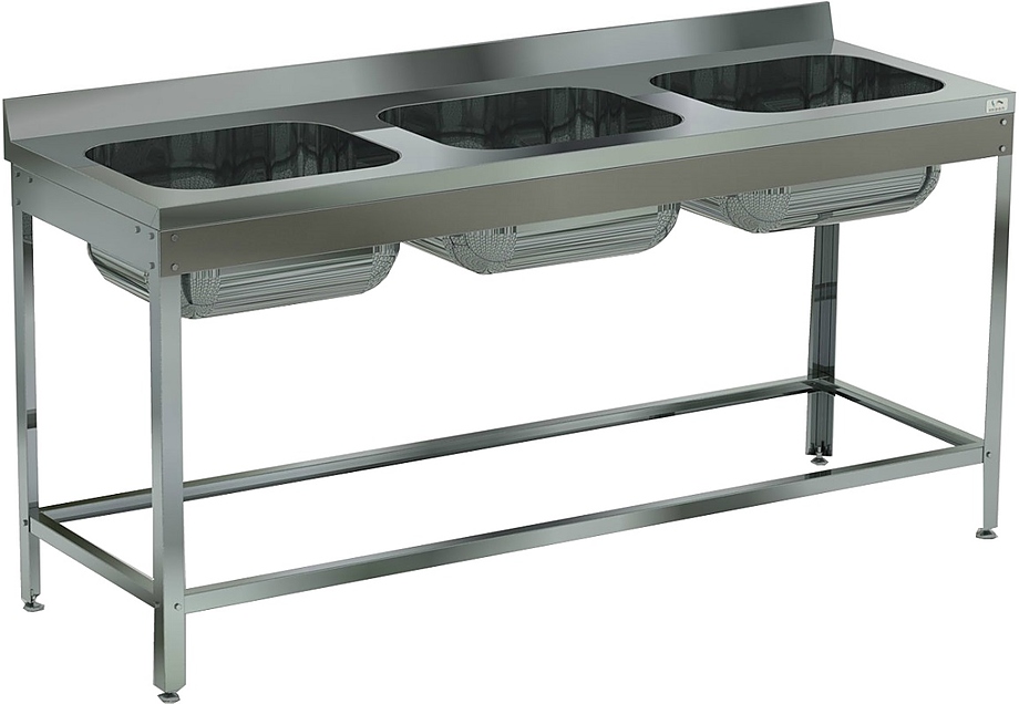Емкость ванны Кобор ВМЦ/3-180/60/430 выполнена из высококачественной пищевой нержавеющей стали, имеет подогнутую кромку для предотвращения травмирования рабочего персонала. Ножки изготовлены в виде уголка 40х40 мм из оцинкованной стали и регулируются по высоте, что помогает избежать наклона рабочей поверхности. Во избежание попадания воды и грязи у ванной имеется борт высотой 70 мм.