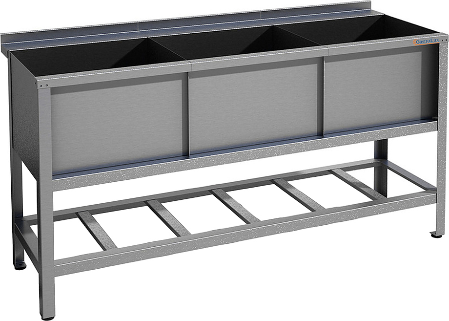 Моечная ванна Gastrolux ВМ 3-1760Н/Е серии Econom предназначена для мойки приборов, посуды, кухонных принадлежностей и продуктов на предприятиях общественного питания. Корпус выполнен из нержавеющей стали AISI 430, каркас - из нержавеющего профиля AISI 430 40х40 мм.