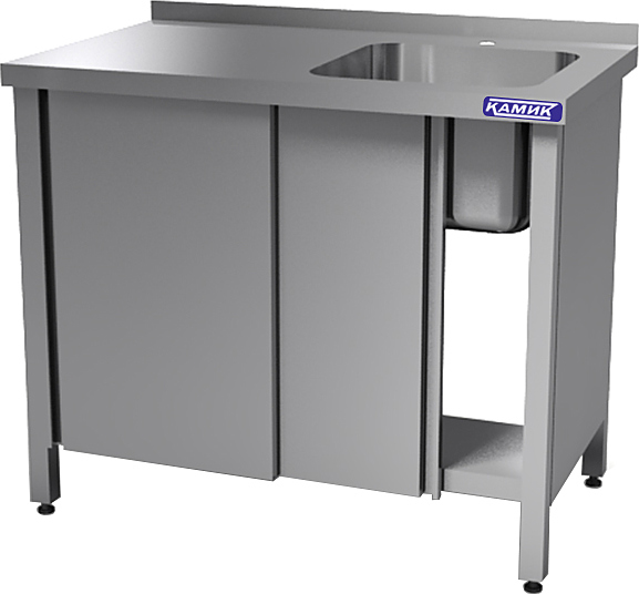 Моечная ванна КАМИК ВМ-1-411571 используется на предприятиях общественного питания и торговли для мойки посуды, овощей и фруктов. Сварной каркас и столешница выполнены из нержавеющей стали AISI 430, цельнотянутая емкость - из нержавеющей стали AISI 304.