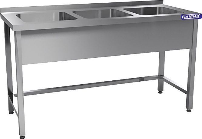 Моечная ванна КАМИК ВМ-П3207 используется на предприятиях общественного питания и торговли для мойки посуды, овощей и фруктов. Сварной каркас выполнен из нержавеющей стали AISI 430, сварная емкость - из нержавеющей стали AISI 304.