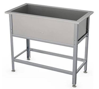 Моечная ванна ATESY ВСМ-С-1.1110.530-02-Н серии Стандарт предназначается для мытья посуды и кухонного инвентаря, овощей и фруктов, а также для оттайки замороженных продуктов. Кромки ванны имеют безопасную фальцовку, углы зашлифованы. Ножки регулируются по высоте. Тип конструкции - разборная. Материал каркаса - уголок 40x40 из нержавеющей стали AISI 430 (толщина 0.8 мм), материал ванны - нержавеющая сталь AISI 304 (толщина 0.8 мм), материал опоры регуляторов высоты - нержавеющая сталь с пластиковым основанием.