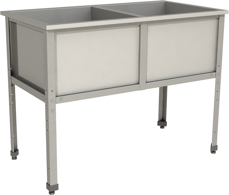 Моечная ванна Restoinox ВМС-2/5-ЭЦ предназначается для мытья посуды, кухонного инвентаря и продукции на предприятиях общественного питания, торговли и пищевых производствах. Материал каркаса - уголок из оцинкованной стали (40х40 мм), материал емкости - нержавеющая сталь AISI 430.