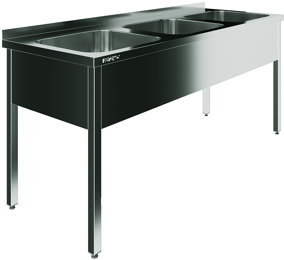 Моечная ванна Restoinox ВМЦ-3/18/7-Б предназначается для мытья посуды, кухонного инвентаря и продукции на предприятиях общественного питания, торговли и пищевых производствах. Ванна оснащена фартуком с 3х сторон. Материал каркаса - нержавеющая сталь AISI 430 (труба 40x40 мм), материал фартука - нержавеющая сталь, материал емкости - нержавеющая сталь AISI 304.