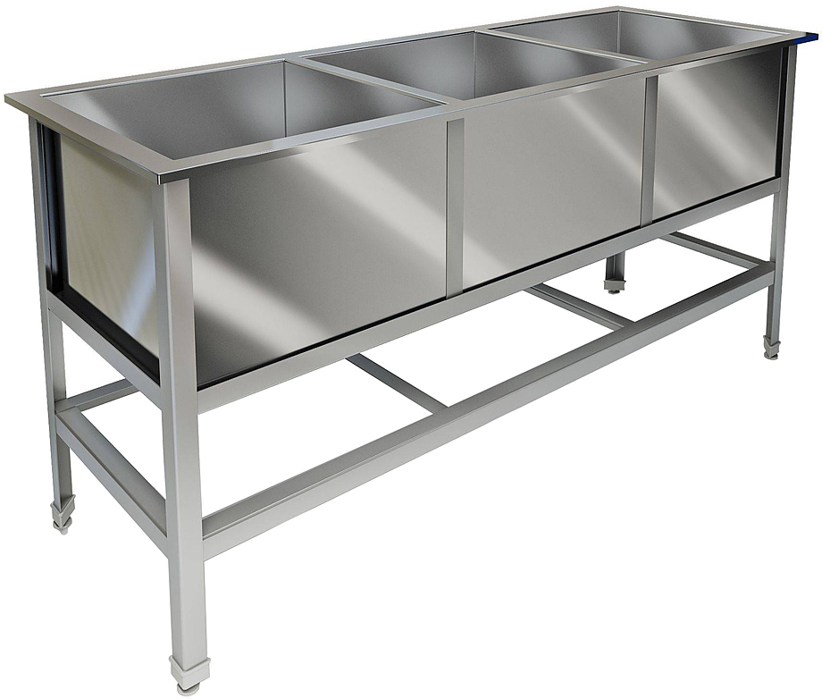 Моечная ванна Техно-ТТ ВМ-42/500 используется на предприятиях общественного питания, торговли и пищевых производствах для мытья и ополаскивания продуктов, посуды и различного инвентаря. Модель оснащена обвязкой ног по периметру, выпуском с нержавеющей решеткой, механическом запорным клапаном и регулируемыми опорами. На дне ванны ребра жесткости для снижения вибрации. Материал сварного каркаса - нержавеющая сталь AISI 430 (уголок 40x40 мм), материал емкостей - нержавеющая сталь AISI 304.