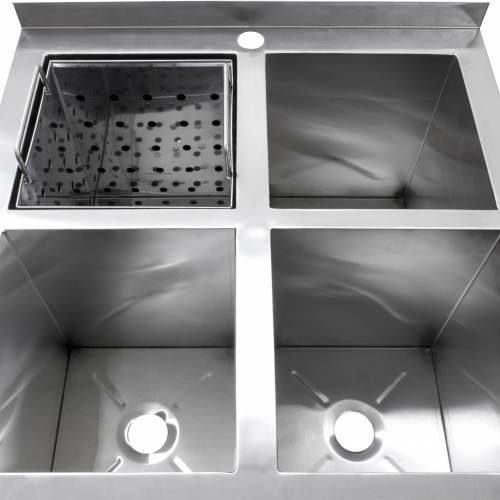 Моечная ванна Пищевые Технологии ВМОя-6/6-М предназначена для санитарной обработки яиц на предприятиях общественного питания, торговли и пищевых производствах. Модель оснащена отверстием для смесителя и регулируемыми ножками. Материал каркаса - высококачественная нержавеющая сталь (труба 40х40 мм), материал ванны - высококачественная нержавеющая сталь AISI 430, толщиной 0.8 мм.