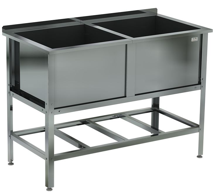 Емкость ванны Кобор ВМСБ/2-134/70/430 выполнена из высококачественной нержавеющей стали. Технология сварки швов ванны обеспечивает не только герметичность соединения, но и прочность конструкции. Ножки изготовлены в виде уголка 40х40 мм из оцинкованной стали и регулируются по высоте, что помогает избежать неустойчивости рабочей конструкции.