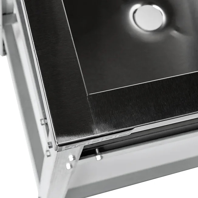 Емкость ванны Кобор ВМСР/1-134/70/430 выполнена из высококачественной нержавеющей стали. Технология сварки швов ванны обеспечивает не только герметичность соединения, но и прочность конструкции. Ножки изготовлены в виде уголка 40х40 мм из оцинкованной стали и регулируются по высоте, что помогает избежать наклона рабочей поверхности.
