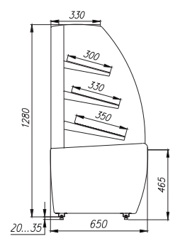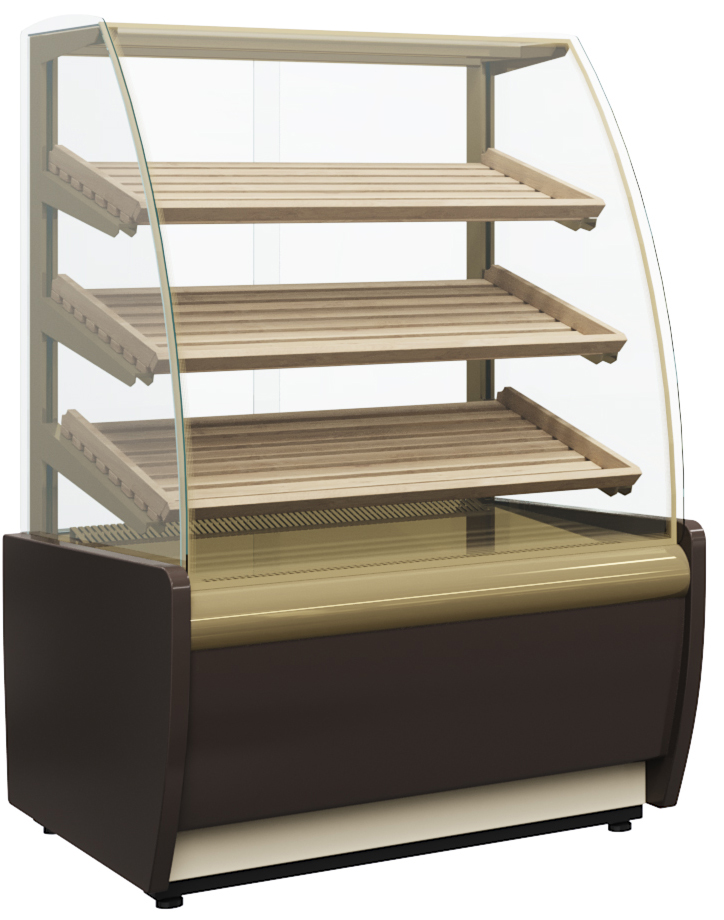 Хлебная витрина Carboma K70 N 0,9-2 LIGHT (Техно) используется на предприятиях общественного питания и торговли для демонстрации и кратковременного хранения хлебобулочных изделий. Модель оснащена боковыми стеклами, 3 наклонными деревянными решетчатыми полками и регулируемыми ножками высотой от 20 до 35 мм. Основание и декоративные панели выполнены из стали, боковины - из пластика с пенополиуретановой теплоизоляцией, раздвижные задние створки - из оргстекла.