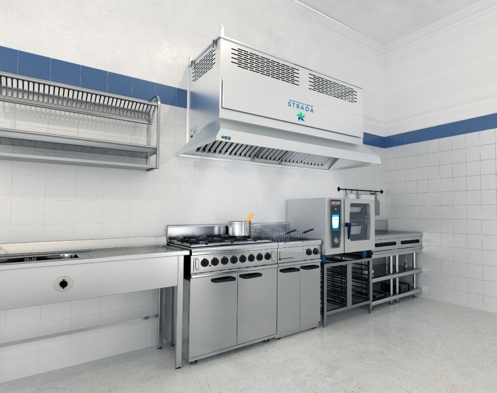 Вытяжной зонт-рециркулятор STRADA ЗОНТ 5,0 предназначается для очистки и рециркуляции воздуха в кухонных помещениях на предприятиях общественного питания и торговли. Получил широкое применение в местах, где нет физической возможности организовать полноценную вытяжную систему - фуд-корты, аэропорты, офисные здания. Обеспечивает рециркуляцию воздуха на кухне, очистку воздуха от запаха и жира, частичную очистку от сажи. Высокий уровень фильтрации, прост в установке, оснащен системой 5 тихих вентиляторов Systemair с функцией регулировки и 10 светильниками. Корпус выполнен из нержавеющей стали AISI 430.