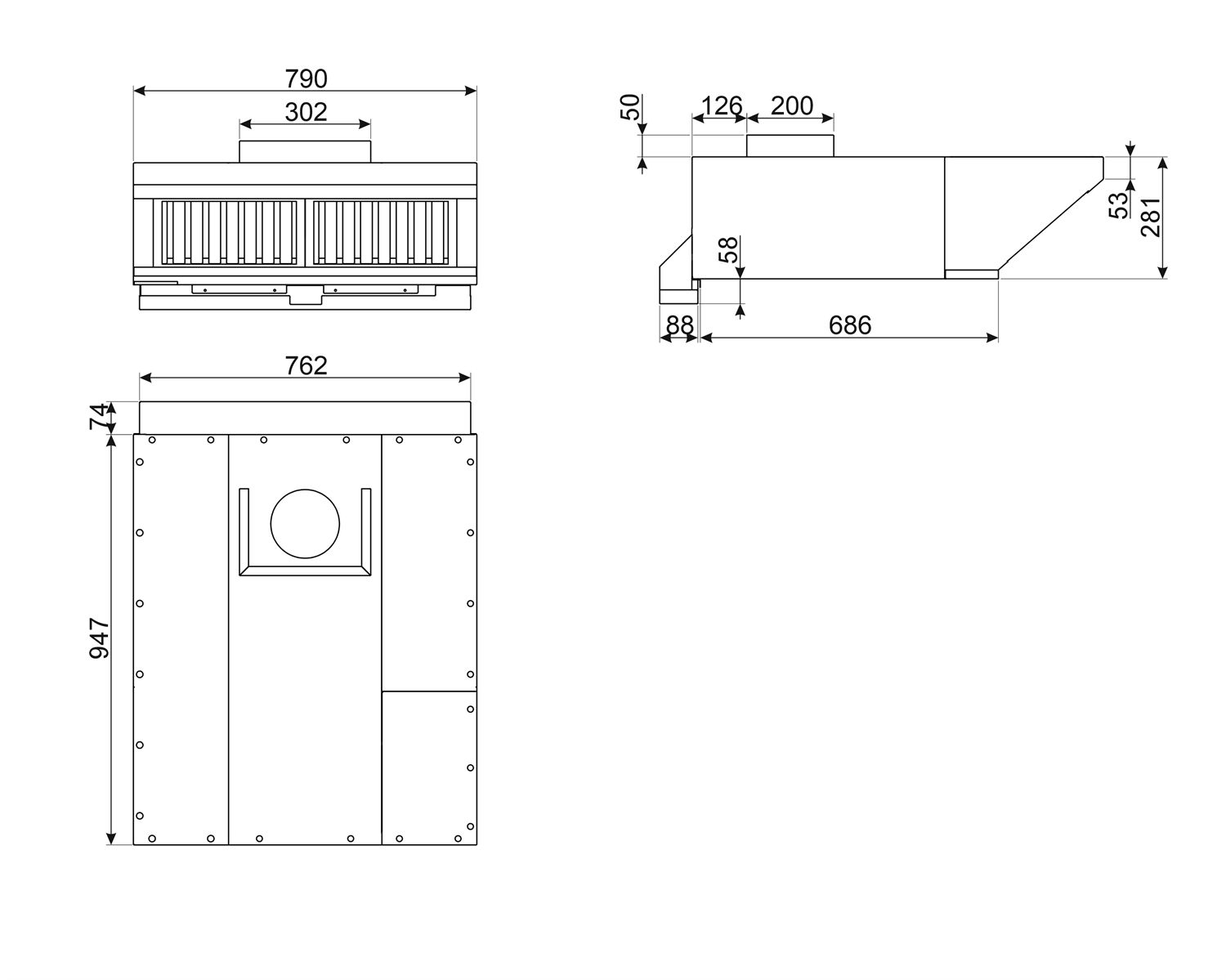 • Диаметр выходного отверстия для вентиляции: 150 мм