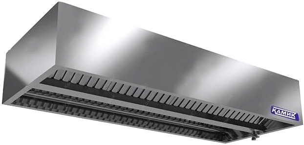 Центральный вытяжной зонт КАМИК ВЦ-К-2024 предназначен для очищения воздуха от излишков пара, дыма, жира и продуктов горения на предприятиях общественного питания, торговли и пищевых производствах. Зонт оснащен лабиринтными жироулавливающими фильтрами. Материал корпуса - нержавеющая сталь AISI 430.