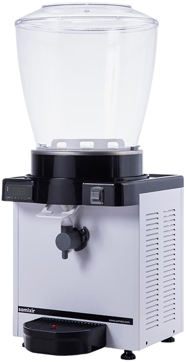 Сокоохладитель Samixir KAM22.DW используется в ресторанах, кафе, барах, супер- и гипер-маркетах, магазинах, на предприятиях уличной торговли и в развлекательных центрах для охлаждения и розлива различных сокосодержащих напитков. Модель оснащена электронным термостатом, антивандальной чашей из поликарбоната, поддоном для сбора капель со встроенным индикатором воды.