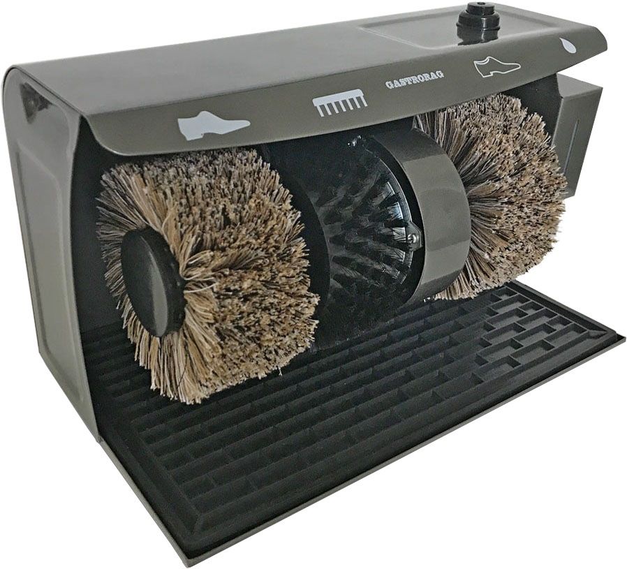 Машинка для чистки обуви Gastrorag JCX-12 используется в отелях, офисах, частных домах и квартирах. Модель оснащена ножным управлением, 2 щетками для полировки обуви, 1 щеткой для чистки обуви и контейнером для крема с дозатором. Корпус выполнен из эмалированной стали, коврик для чистки подошв - из ткани, щетки - из терилена.