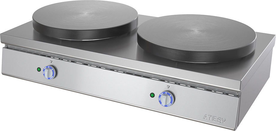 Блинница ATESY Масленица БА-2-400-02 предназначается для выпекания традиционных круглых блинов. Механическая регулировка температуры жарочной поверхности при помощи терморегулятора. Равномерный нагрев осуществляется ТЭНом, располагающимся снизу, что гарантирует равномерное прожаривание блинов по всей поверхности. Материал корпуса - нержавеющая сталь, материал жарочной поверхности - жаропрочный чугун.