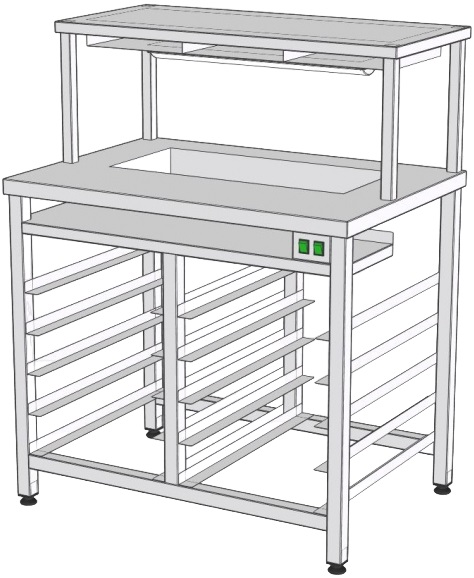 Станция RoboLabs СФ-100Т используется на предприятиях общественного питания, торговли и пищевых для производствах с целью комплексного оснащения места для приготовления и продажи бургеров. Модель оснащена нейтральной ванной на 4 гастроемкости, тепловой поверхностью, направляющими и подсветкой. Материал станции - высококачественная нержавеющая сталь.