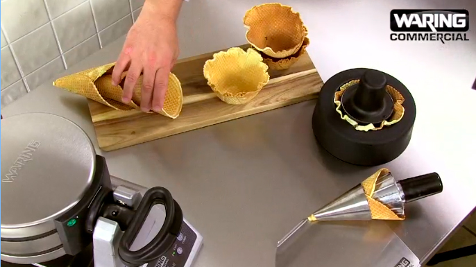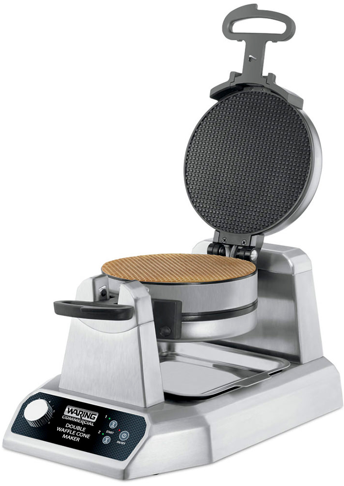 Вафельница Waring WWCM200 используется на предприятиях общественного питания и торговли для выпекания конических вафель. Рабочие поверхности покрыты тройным антипригарным покрытием для простого извлечения готовых вафель и легкой очистки пластин. Вмонтированные в пластины нагревательные элементы обеспечивают точный контроль температуры и равномерное распределение тепла.