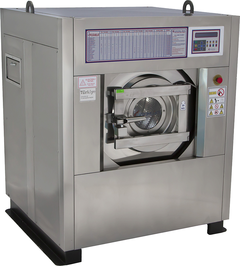 Стирально-отжимная машина Kromluks KOCYS-B/20 предназначается для стирки, полоскания, отжима белья и одежды в прачечных предприятий гостиничного бизнеса, оздоровительных и образовательных заведениях, поликлиниках и больницах, общежитиях, воинских частях и предприятиях других сфер. 15 стандартных и 10 настраиваемых программ. Подрессоренная подвеска барабана. Материал облицовки корпуса и всех поверхностей, соприкасающихся с водой и тканью - нержавеющая сталь AISI 304.