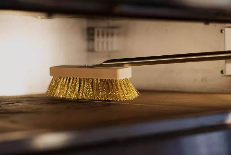 Щетка GIMETAL ACF-SP/150 используется для чистки камер электрических печей для пиццы от золы, остатков продукции. Длинная рукоятка с отверстием для подвешивания. Материал рукоятки - нержавеющая сталь, материал головки - дерево, материал щетины - латунь, материал наконечника и вставки - прочный полимер черного цвета, материал щетины - латунь.