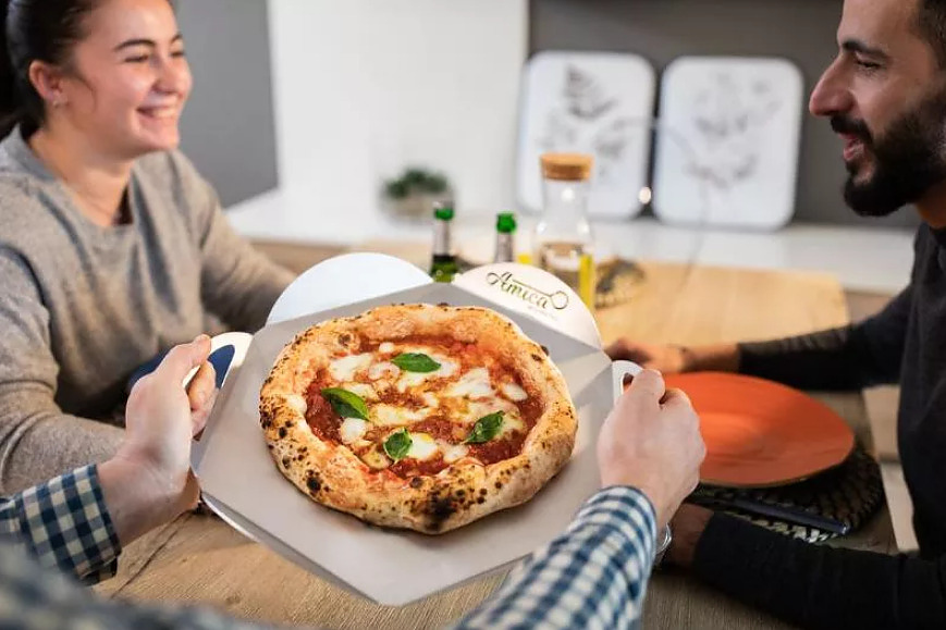 Поднос для пиццы GiMetal VPFT33 предназначается для выкладки, подачи, нарезания пиццы и прочих изделий на предприятиях общественного питания, торговли, пищевых производствах и в домашних условиях. Основание подноса - правильный 6-угольник, 6 бортиков в виде округлых лепестков. Материал изготовления - высококачественный алюминий.
