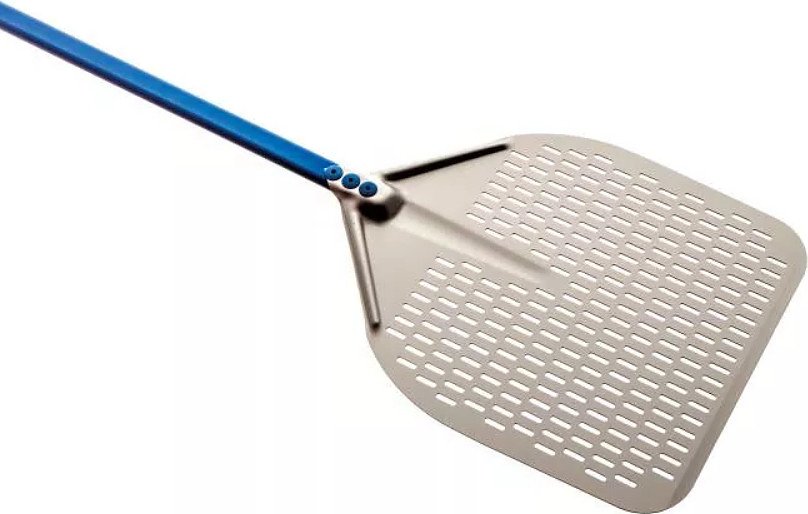 Лопатка GiMetal A-50RF серии Azzurra предназначается для загрузки, выгрузки и поворачивания пиццы и других хлебобулочных изделий в процессе приготовления на предприятиях общественного питания, торговли, пищевых производствах и в домашних условиях. Головка прямоугольной формы. Лопатка оснащена длинной рукояткой. Материал головки - высококачественный анодированный алюминий, материал рукоятки и заклепок - анодированный алюминий с покрытием лазурно-голубого цвета, перфорация выполнена методом лазерной проточки.