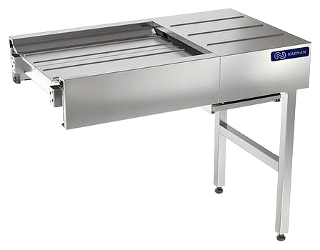 Модуль натяжной KAYMAN ТМ-Н-01 А используется на предприятиях общественного питания, торговли и пищевых производствах для натяжения ленты транспортера перед сбором грязной посуды. В модели предусмотрены регулируемые ножки с пластиковыми опорами. Материал рабочей поверхности - высококачественная нержавеющая сталь AISI 430, материал каркаса - высококачественная нержавеющая сталь AISI 201 (труба 40х40 мм), материал конвейерной ленты - ткань с верхним слоем ПВХ.