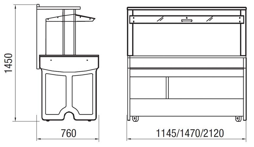 Роликовые колёсики дают возможность свободно перемещать салат-бар, несмотря на массивность конструкции. Для обеспечения стационарного положения два из четырёх колёсиков оснащены стопорными механизмами.