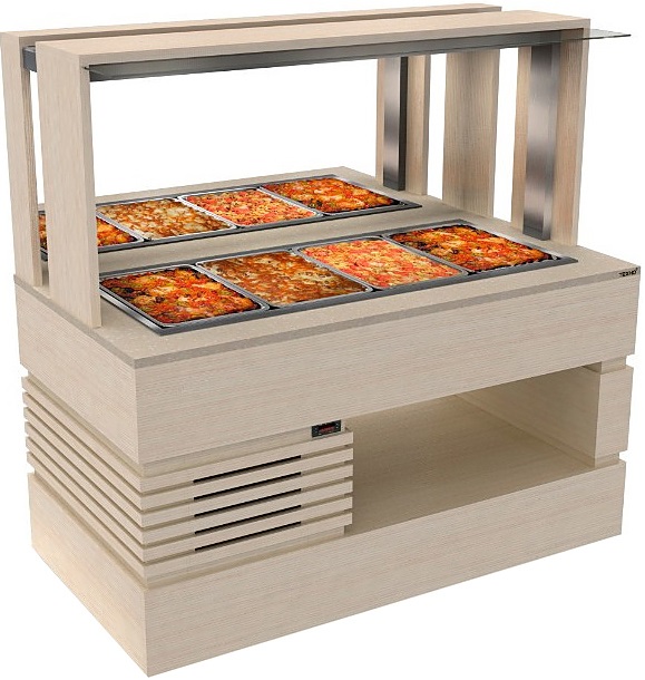 Техно-ТТ БМВ-212/1286 используется на предприятиях общественного питания и торговли для выкладки, хранения и раздачи продуктов. Каркас - оцинкованная сталь, фасад выполнен из шпона и МДФ, столешница изготовлена из искусственного камня. В модели предусмотрена ниша.