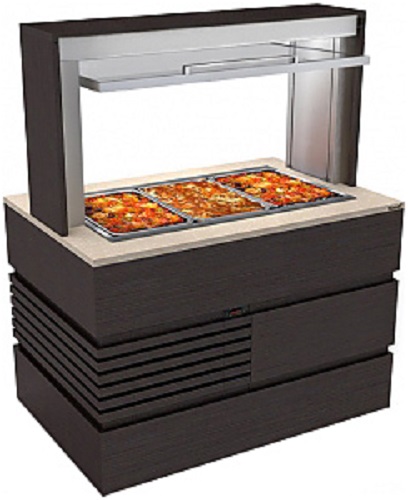 Буфет с мармитом вторых блюд Техно-ТТ БМВ-104/966 используется на предприятиях общественного питания и торговли для выкладки, хранения и раздачи продуктов. Каркас - оцинкованная сталь, фасад выполнен из шпона и МДФ, столешница изготовлена из искусственного камня. В модели предусмотрена полка с подъемным механизмом.