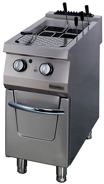 Макароноварка OZTI OMG 4090 используется на предприятиях общественного питания, торговли и пищевых производствах для варки макаронных изделий, овощей, морепродуктов, изделий из теста, гарниров и других продуктов. Модель оснащена механическим управлением, термостатом, аварийным устройством в случае затухания пламени, конфорками с микроперфорацией, краном и емкостью для слива воды. Материал корпуса и конфорок - высококачественная нержавеющая сталь, материал цельнотянутой емкости - высококачественная нержавеющая сталь AISI 316.