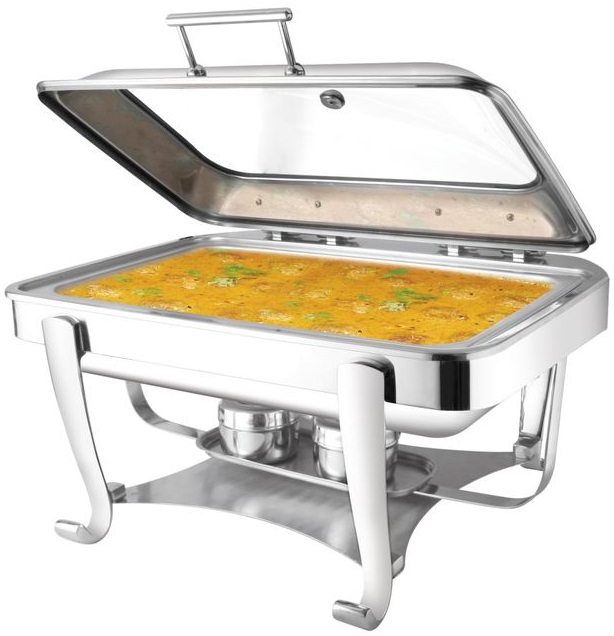 Чафинг-диш MACO Opulent OP/0/1/12/CP используется для постоянного подогрева первых и вторых блюд и поддержания их оптимальной температуры на предприятиях общественного питания, торговли, пищевых производствах и в сфере выездного обслуживания и для организации банкетов, фуршетов, шведских столов. Модель оборудована откидной крышкой со стеклом. Материал корпуса - высококачественная нержавеющая сталь, материал ножек - латунь с хромовым покрытием.