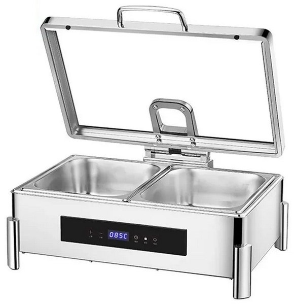 Чафинг-диш MVQ Standart Plus используется на предприятиях общественного питания, торговли, пищевых производствах, в домашних условиях и на выездных мероприятиях для поддержания в горячем состоянии различных блюд. Модель оснащена дисплеем для контроля температуры и откидной крышкой. Материал изделия - высококачественная нержавеющая сталь.