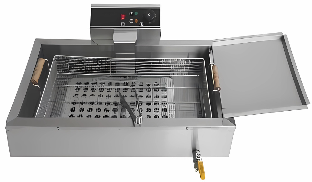 Чебуречница EKSI HEC-16 используется на предприятиях общественного питания, торговли и пищевых производствах для приготовления в большом количестве горячего масла различных блюд. Модель оснащена электронным управлением, регулировкой температуры, индикатором нагрева и ТЭНами. Материал изделия - высококачественная нержавеющая сталь.