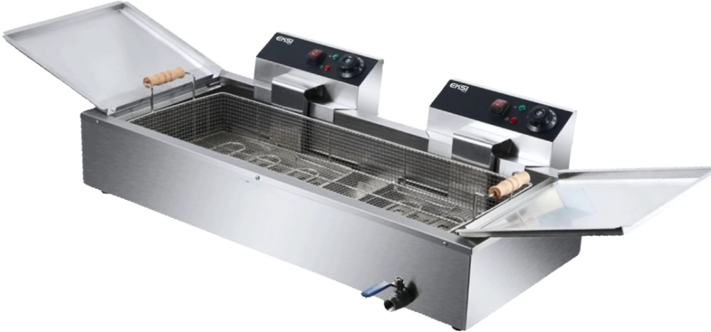 Чебуречница EKSI HEC-32 используется на предприятиях общественного питания, торговли и пищевых производствах для приготовления в большом количестве горячего масла различных блюд. Модель оснащена электронным управлением, регулировкой температуры, индикатором нагрева и ТЭНами. Материал изделия - высококачественная нержавеющая сталь.