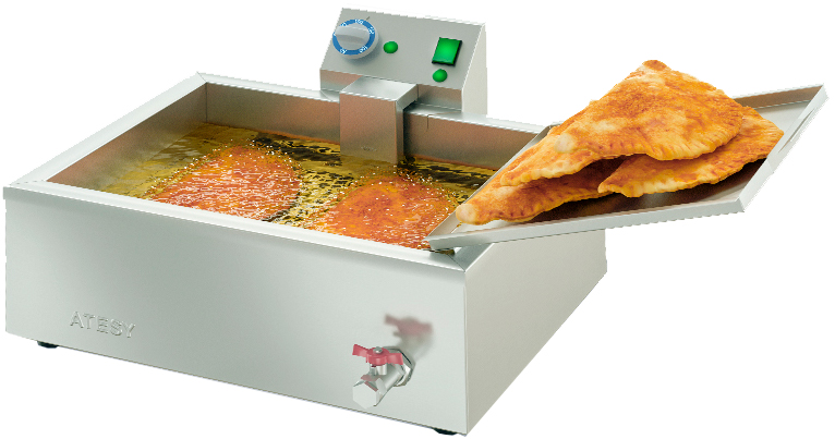 Фритюрница ATESY Чебуречница-мини М используется на предприятиях общественного питания и торговли для приготовления чебуреков, пирожков и беляшей в разогретом масле (фритюре). Модель оснащена терморегулятором и 2 индикаторными лампами. Изделие полностью выполнено из пищевой нержавеющей стали.