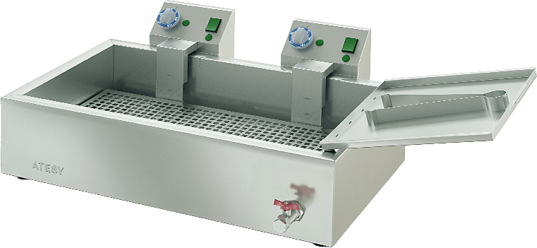 Фритюрница ATESY Чебуречница М используется на предприятиях общественного питания и торговли для приготовления чебуреков, пирожков и беляшей в разогретом масле (фритюре). Модель оснащена 2 терморегуляторами и 4 индикаторными лампами. Изделие полностью выполнено из пищевой нержавеющей стали.