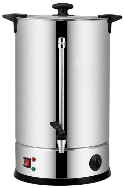 Кипятильник Hualian WB-15A предназначается для нагрева воды и поддержания её температурного режима на предприятиях общественного питания, торговли и пищевых производствах. Аппарат оснащен электромеханическим регулятором температуры, автоматическим поддержанием температуры, заливным типом подачи воды, световым индикатором, ТЭНами закрытого типа и краном. Материал корпуса - нержавеющая сталь AISI 304, материал верхней крышки - специальный термостойкий пластик с пароотводящим отверстием.