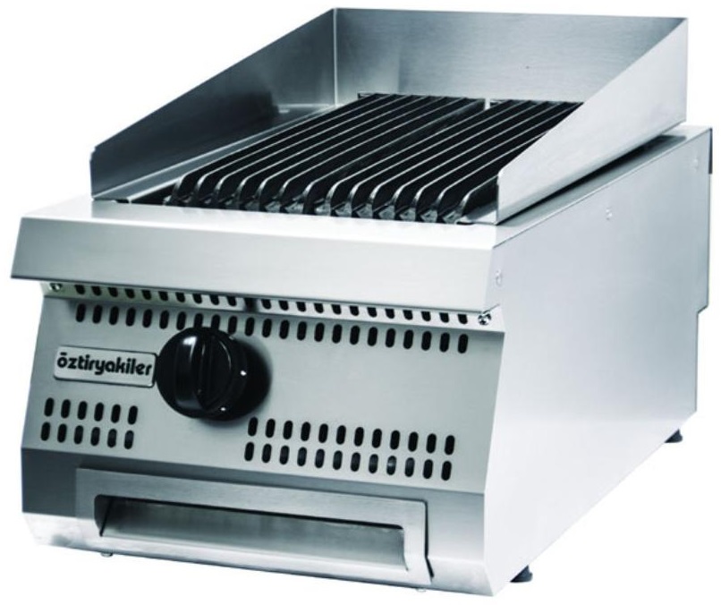 Лавовый гриль OZTI ODG 4070 используется на предприятиях общественного питания, торговли и пищевых производствах для приготовления блюд из мяса, птицы, рыбы и овощей. Модель оснащена механическим управлением, пьезоподжигом, съемными решетками, предохранителем,  огнезащитными решетками и поддоном для сбора жира,масла и остатков пищи. Материал корпуса и решеток - высококачественная нержавеющая сталь.
